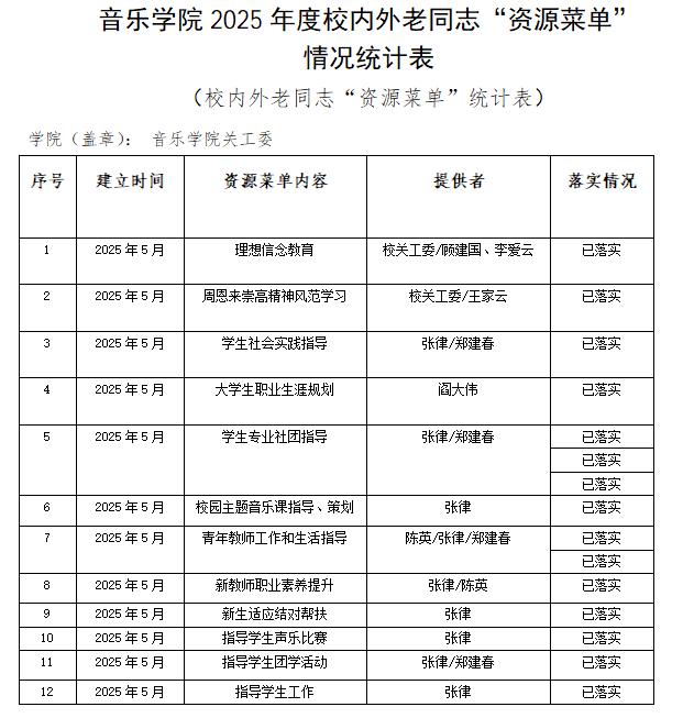 音乐学院2025年度校内外老同志“资源菜单” 情况统计表
