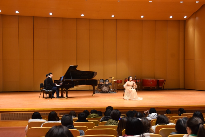 1月3日晚七点,音乐学院在音乐厅举办第十一届器乐专业擂台总决赛,副院长章莉、仲崇连,器乐系全体老师以及音乐专业学生前来观看。