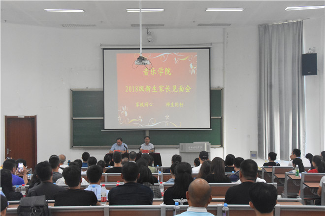 9月9日下午,音乐学院2018级新生家长见面会在音乐楼A1—111阶梯教室举行。参加会议的有院党委书记伍兵、党委副书记殷成志、学工办副主任郑建春、辅导员张菁菁、涂聪、18级全体新生班主任以及部分学生家长代表,会议由殷成志主持。