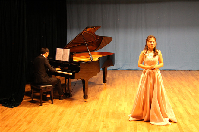 本次音乐会分为上下两半场,上半场为杨迪带来的三首声乐独唱和胡琴子的两首独唱。杨迪用发散的音型,配合含蓄的律感将《问》所表达的对国家前途和命运的担忧之情传达出来。《岁月悠悠》堪称是近代艺术歌曲中实现了中西音乐完美融合的典范,杨迪把它演唱的毫无差错。充满强烈戏剧性的《一抹夕阳红》,被胡迪演唱的淋漓尽致。胡琴子带来的一首欢快的《踏雪寻梅》,瞬间把人们带到了青少年学生骑着毛驴、踏着冬雪去欣赏梅花绽放的情景,而经典的云南民歌《小河流淌》则让人听后久久回味。