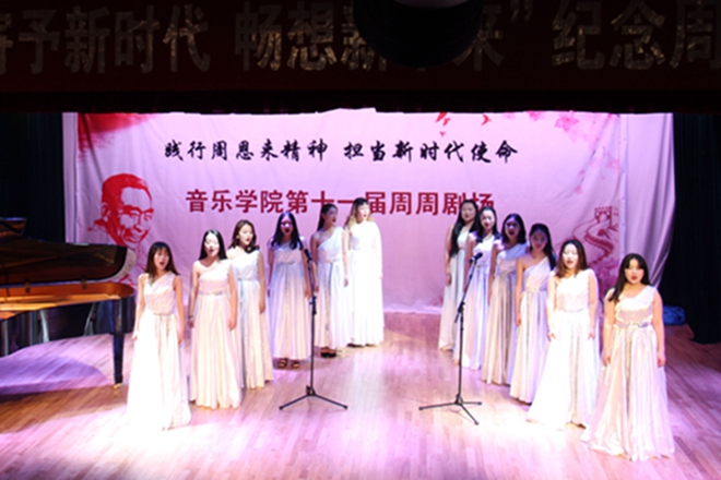 4月18日晚7点,音乐学院1703班在音乐学院小剧场举行第十一届周周剧场第四场——“寄予新时代,畅想新未来”纪念周恩来诞辰120周年专场演出。