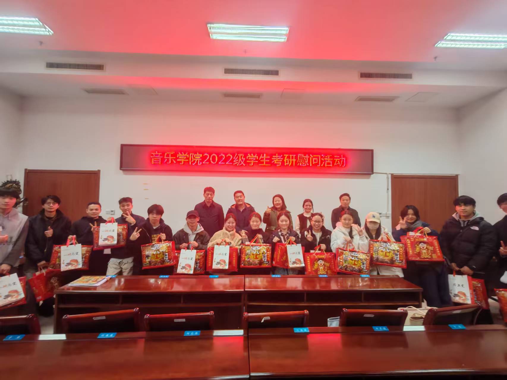 近日,音乐学院为2026届备战研究生考试的学子举办了一场温馨的考研慰问活动。音乐学院院长仲崇连、党委副书记陈晨及2022级各班主任共同出席,为正在紧张备考的同学们送上关怀与鼓励。