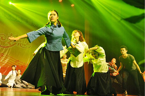 随着凝重的音乐响起,不断变换的舞姿,丰富的面部表情,同学们将《松花江上》演绎得淋漓精致。师生合唱的歌曲《松花江上》,深厚的唱功和专业的技能生动表达出“九·一八”事变后全国人民的悲愤情怀,唤醒了民族之魂,点燃了中华大地的抗日烽火。歌声与舞蹈配合得天衣无缝,给全场观众带来雄伟壮观、热血沸腾的视听盛宴!