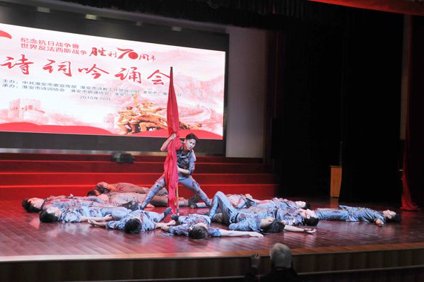 10月30日下午,音乐学院师生参加由中共淮安宣传部、淮安市诗教工作领导小组、淮安市广播电视台主办的,淮安市诗词协会、淮安市朗诵协会、淮安小学承办的纪念抗战胜利70周年诗词吟诵会。