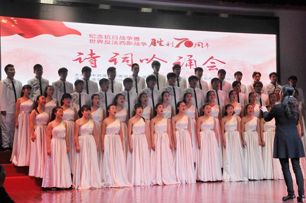 今年是抗日战争胜利70周年,这是通过全民族的齐心抗争,最终才赢得的胜利。胜利带给了中华民族无尽的喜悦,但是胜利更应该引发深思。“保卫家乡,保卫黄河,保卫华北,保卫全中国……”音乐学院合唱团的同学们发出愤怒的吼声,一曲《保卫黄河》惊天地,泣鬼神。
