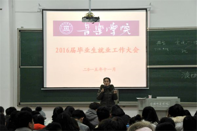 为进一步有效推进毕业生就业工作的顺利开展,11月25日下午3时,音乐学院2016届毕业生就业工作大会在音乐楼A3-101举行,2016届全体毕业生以及毕业班班主任老师参加会议,会议由学工办副主任郑建春老师主持。