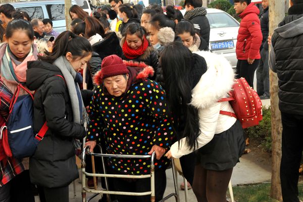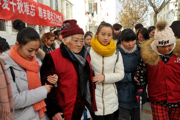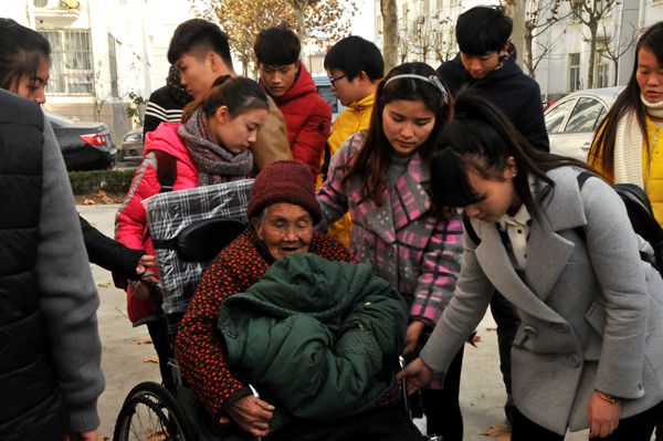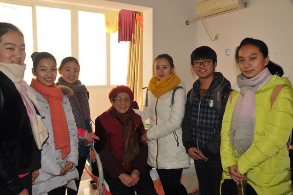 表演结束后,志愿者搀扶老人回房间。为老人们打扫卫生、陪老人聊天听曲、给老人洗脚、合影,同学们深切地询问老人的生活和身体状况。一位82岁的老奶奶说:“这儿条件虽然很好,但时常感到孤单寂寞,你们能来我很高兴。”