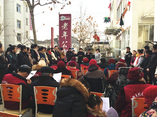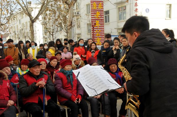 志愿者为老人带来了精彩的才艺表演,女声独唱《报答》唱出了对父母赐予生命,无私付出的感恩。一曲《黄梅戏》让老人不禁回想年轻时的美好,合唱《甜蜜蜜》祝福老人生活甜蜜,健康幸福。伴着含蓄朦胧的葫芦丝,悠扬飘渺的竹笛,低沉深远的萨克斯,清脆欢快的笙……老人们脸上纷纷露出愉快而满足的笑容。