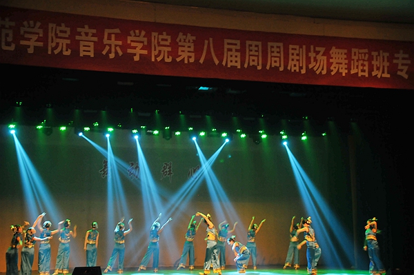 6月8日晚七点,第八届周周剧场“舞动群心”舞蹈班群舞专场演出绚丽开场。全院师生观看演出。