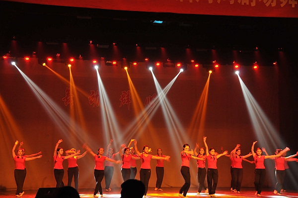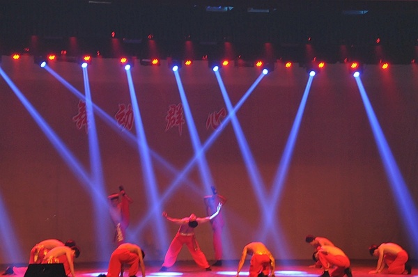 第一个节目,是11级女生演绎的《花季》,整支舞蹈柔美,静谧,如故事般娓娓道来。柔美过后,12级男女生一支《掀起你的盖头来》顿时带动起现场气氛,男生们滑稽搞笑的动作,女生们活泼俏皮的眼神,把这支具有民族特色的舞演绎的淋漓尽致。紧接着,13级女生头戴竹笠,神秘登场,为大家带来《风荷雨笠》,舞蹈中女生们的脸被竹笠遮挡着,若隐若现,加上灯光的配合,仿佛身处仙境。11级12级男生合作的《戈壁沙丘》、《孔雀部落》,更是让同学们大饱眼福,他们时而阳刚,时而柔美的精彩表演彰显台下的努力与付出。古典舞过后,13级女生为大家带来现代与具有异域风情的印度舞相结合的《热火青春》。接近尾声时,13级男生表演具有蒙古特色的《红色英雄》,为我们展现出草原的狼图腾。最后11级以《心声》完美收场。