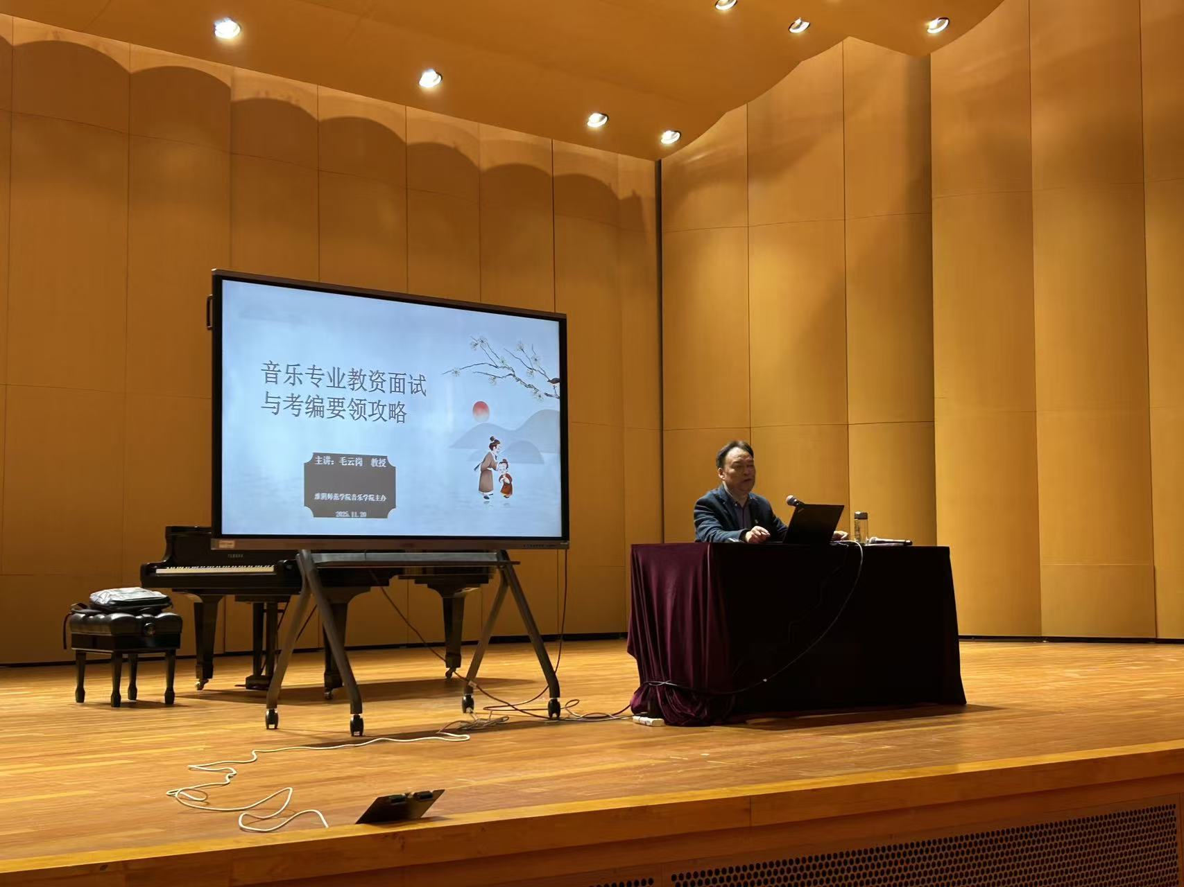 为精准服务学生就业需求,助力音乐专业学子高效备考教师资格考试及事业单位编制招聘,我院于近期成功举办了“音乐教资面试与考编核心攻略”专题指导讲座。本次活动旨在破解备考难点,提升学生应试实战能力,吸引了众多有志于从事教育事业的本科生与研究生积极参与。